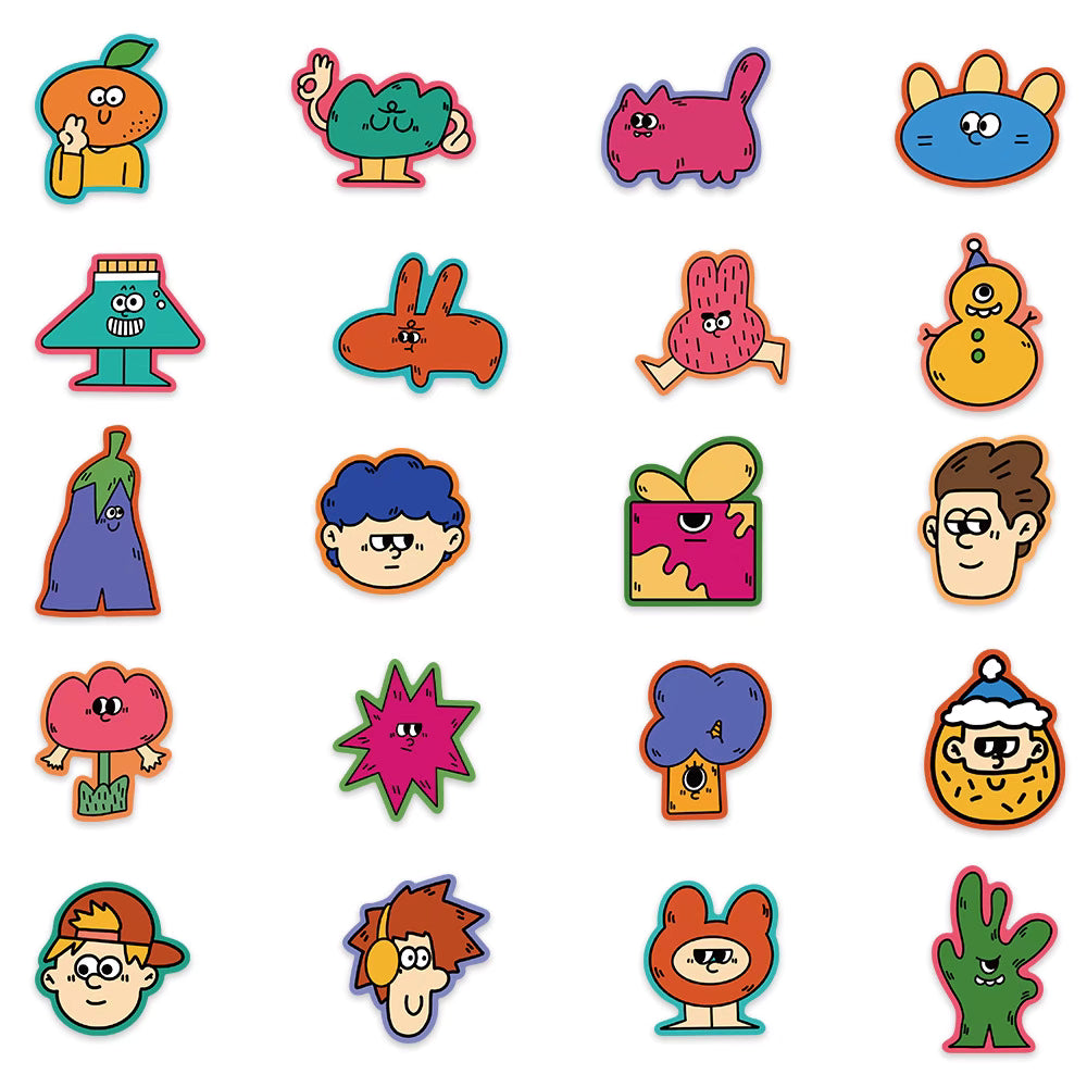 Explore your creative side with this unique collection of 40 original hand-drawn cartoon stickers! Each design is bursting with personality, featuring whimsical and quirky artwork that adds a playful charm to your everyday items. These stickers are made with premium waterproof materials, ensuring they stay vibrant and intact wherever you stick them.